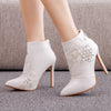 Thin-heeled Pointed Lace Rhinestone Boots