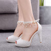 Thin Lace Beaded Fishmouth High-heeled Sandals