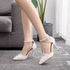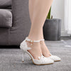 White Lace Rhinestone Pearls Wedding Shoes