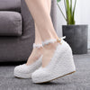White Lace Wedges Wedding Shoes