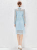 Blue Long Sleeve Heavy-duty Lace Dress