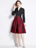 Bubble Sleeve V-neck Jacquard Big Swing Dress