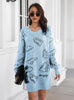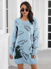 Dinosaur Jacquard V-neck Long Sleeve Sweater Dress