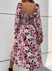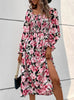 Flower Long Sleeve Print Split Dress