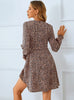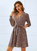 Long Sleeve Deep V-Neck Leopard Print Dress