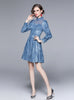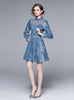 Long Sleeve Perspective Mesh Stitching Denim Dress