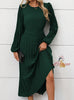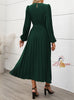 Long Sleeve Pleated Round Neck High Waist Dress