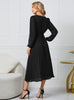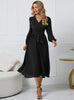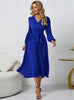 Long Sleeve Slim Pleated Belt V-neck Dress