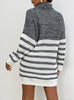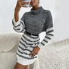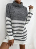 Loose Striped Stitching Contrast Turtle Neck Dress