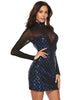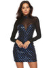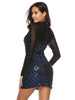 Mesh Long Sleeve Plaid Sequined High Neck Dress