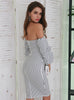 Off-the-shoulder Low-waist Lantern Long Sleeved Striped dress