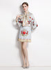 Printed Bow Tie Shirt+High Waist Skirt Suit