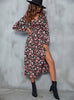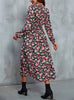 Printed Slit V-neck Long Sleeve Dress