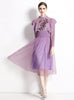 Purple Long Sleeve Lace Embroidery Gauze Dress
