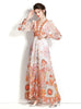 Retro Deep V-neck Lantern Sleeve Printed Dress