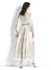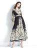 Retro Palace Style V-neck Lantern Sleeve Printed Dress