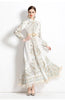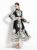 Retro Printed Long Sleeve Fringed Dress