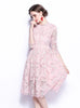 Round Neck Openwork Lace 3/4 Sleeves Dress