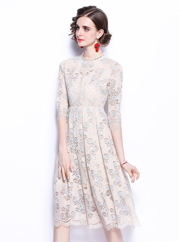 Round Neck Openwork Lace Sleeves Dress