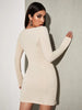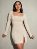 Sexy Slit Knitted Square Collar Long Sleeve Dress