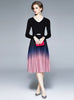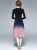 Slim Waist Gradient Pleated Long Sleeve Prom Dress