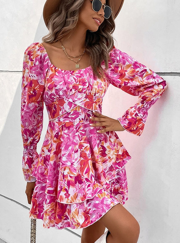 Look and feel your best in the Lilacoo Floral Print Smocked Long Sleeve Mini Dress! This beautiful dress is made of lightweight woven fabric with a dainty white floral print and subtle jacquard embossing throughout. It features a square neckline, a relaxed bodice, and sheer long sleeves with elastic ruffle cuffs. The elasticized, smocked waist tops an A-line skirt that ends at a flirty ruffled mini hem. This dress is perfect for any occasion where you want to look effortlessly cute and stylish.