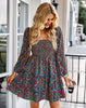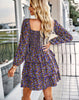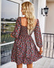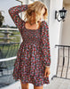 Square Neck Long Sleeve Print Cake Dress