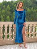 Square Neck Split Long Sleeve Velvet Dress
