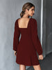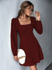 Square Neck Stitching Lace Long Sleeve Dress