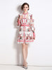 Stand-up Ppenwork Long Sleeve Print Dress