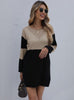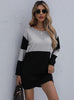 Turtleneck Neck Loose Knit Stitching Sweater Dress