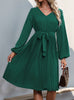 V-neck Long Sleeve Lace-up Dress