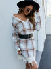 V-neck Long Sleeve Pullover Plaid Long Sweater