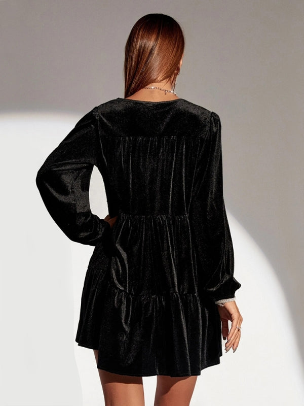 Look ultra-glamorous in this chic velvet dress. Made from luxurious black velvet with a double-breasted design and classic shift dress style, this dress is sure to turn heads. Pair with your highest heels and simple accessories for a fabulous look that is perfect for any occasion.