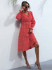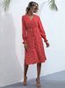 Wave Point V-neck Black Long Sleeve Dress