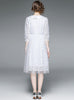 Yarn Broken Flower Middle Sleeve High Waist Dress