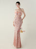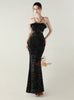 Black Sequins Spaghetti Straps Feather Prom Dress