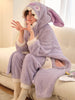 Purple Velvet Padded Nightgown Hooded Long Bathrobe