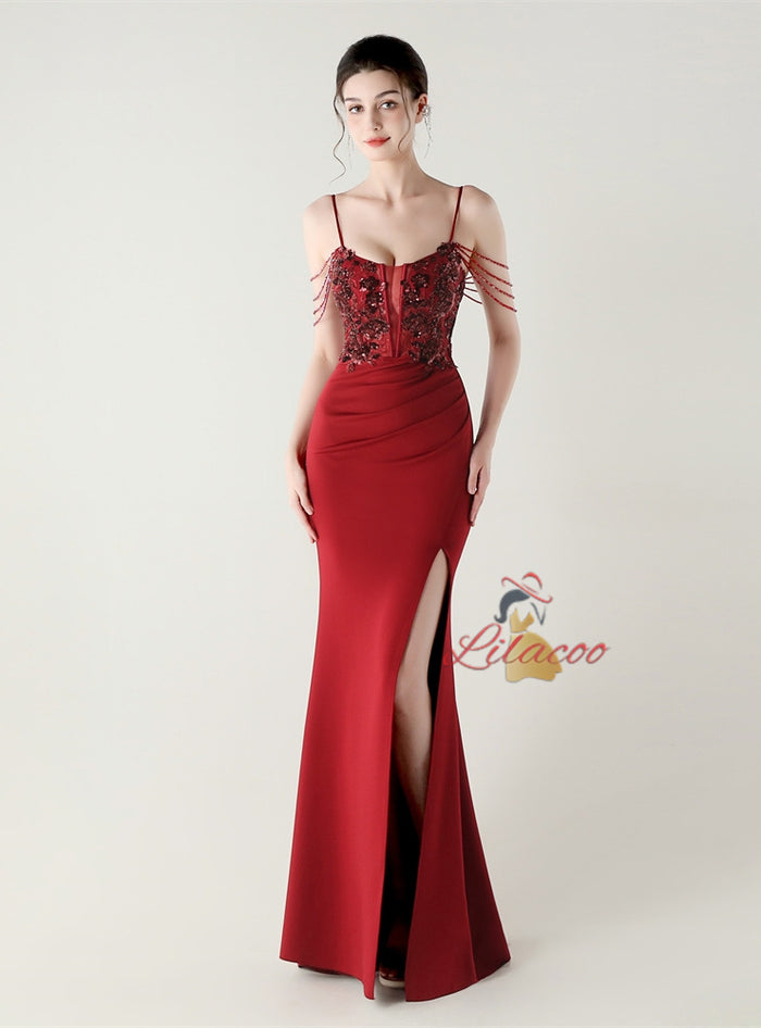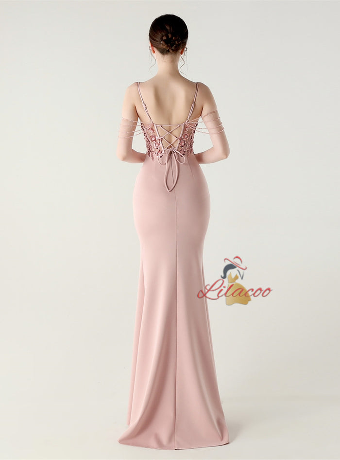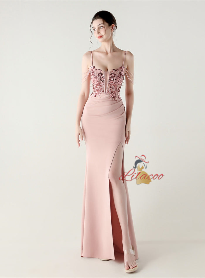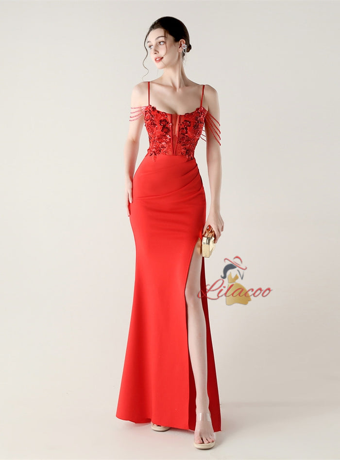 Mermaid Spaghetti Straps Sequins Beading Prom Dress