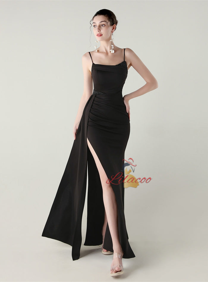 Mermaid Spaghetti Straps Split Beading Prom Dress