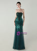 Mermaid Tulle Sequins Strapless Beading Prom Dress