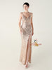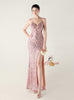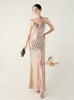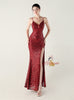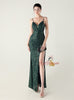 Spaghetti Straps Sequins Split Prom Dress