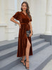 Split Pit Velvet Short Sleeve Dress