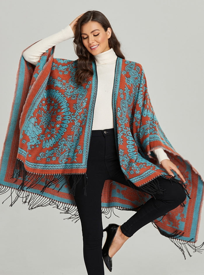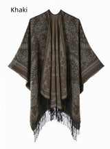 Wrap yourself in a cocoon of irresistible comfort and head-turning style with our Retro National Wind Shawl. This autumn and winter must-have measures a lush 130x150 CM, offering unparalleled warmth and softness. The totem pattern woven in exquisite jacquard practically whispers ancient secrets, while the playful tassels and curling edges inject a dose of modern flair. Whether you're up for an evening out or a quiet day in, this shawl is your perfect companion.