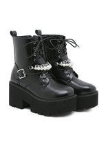 Belt Buckle Metal Pearl Chain Thick-soled Boots