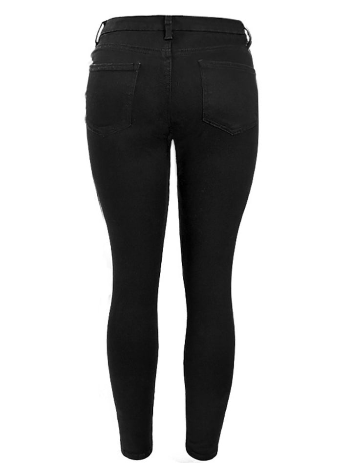 Step up your style game with these must-have skinnies. The sleek black denim material paired with stylish distressed details and a classic 5 pocket design make these jeans the perfect addition to any wardrobe. Whether you're dressing up or dressing down, these versatile skinny jeans are the perfect finishing touch to your look.