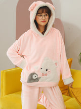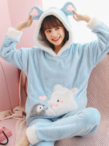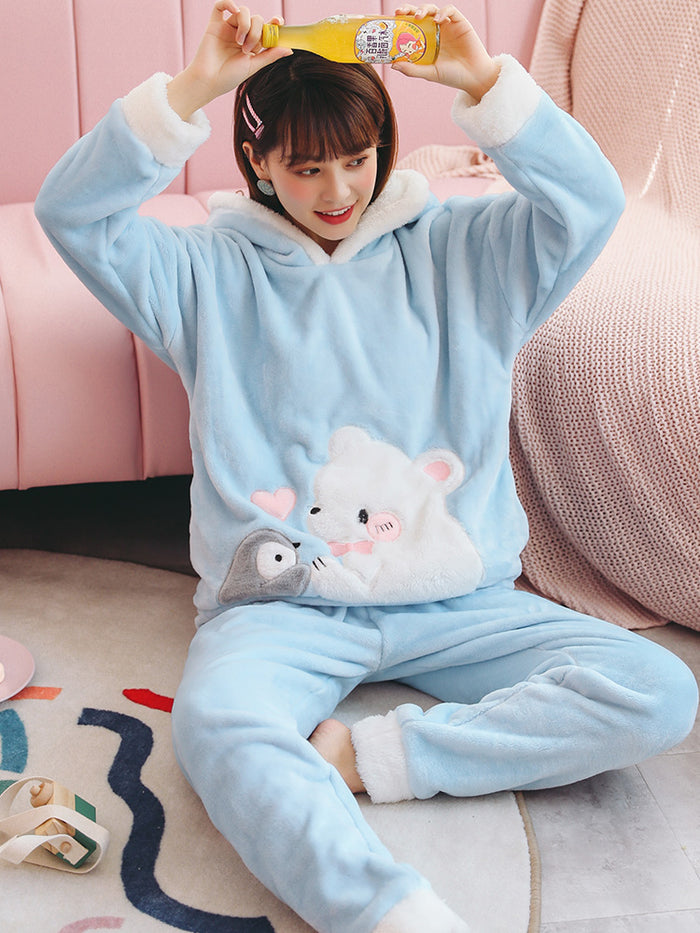 Blue Penguin Polar Bear Pajamas Female Coral Fleece Thick