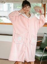 Blue Star Winter Women Long Sleeve Velvet Sleepwear