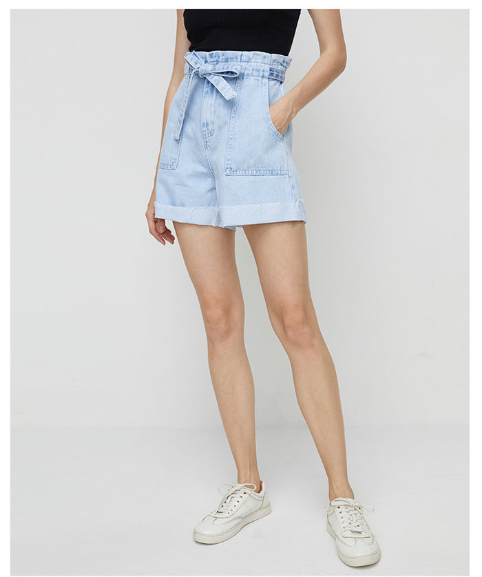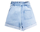 Looking to update your summer wardrobe? These high-waisted, wide-leg shorts in a charming light blue hue are a must-have. Featuring an elastic waist and timeless flanging, you’ll exude nothing but 'It-Girl' energy.