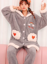 Fashion Gray Rainbow Clouds Coral Fleece Pajamas Suit